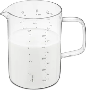 Wysokiej jakości dzbanek miarowy o pojemności 1 litra umożliwia precyzyjne odmierzanie płynów i suchych substancji i jest wykonany z wysokiej jakości szkła borokrzemowego. Szkło borokrzemowe jest szczególnie odporne na wysokie temperatury i wytrzymałe w porównaniu z konwencjonalnymi rodzajami szkła. Model ten charakteryzuje się 5 czytelnymi skalami. Skale są oznaczone w mililitrach, filiżankach, mące, cukrze i ryżu, aby objąć jak najszerszy zakres zastosowań. Skale są łatwe do odczytania i mają wyraźne napisy zapewniające maksymalną precyzję.