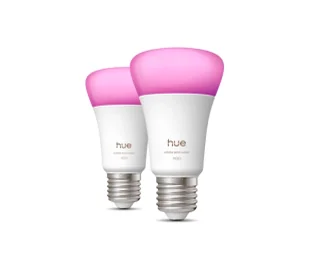 Żarówka Philips Hue Smart LED A60, White and Color Ambiance, trzonek E27, 8,1 W, pełne spektrum światła 1000K–20000K, 1100 lumenów, przyciem, działa z Alexa, Google Assistant i Apple Home, op. 2 szt.