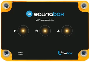 BleBox saunaBox to pierwszy na świecie kontroler saun, który pozwala na zdalne włączanie / wyłączanie oraz sterowanie temperaturą sauny z dowolnego miejsca na świecie - bez wykorzystania dodatkowych urządzeń peryferyjnych. Sterownik saunaBox teraz występuje w wersji Pro - z anteną zewnętrzną dla zwiększenia zasięgu połączenia WiFi. Urządzenie pozwala również na sterowanie manualne za pomocą dotykowych przycisków umieszczonych na górnym panelu. Wartość ustawionej temperatury przekazywana jest również w sposób wizualny poprzez zmieniający się kolor podświetlenia urządzenia.