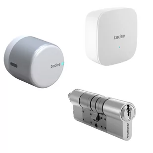 Prosty w instalacji, zaawansowany, inteligentny zamek tedee GO w zestawie z wkładką do zamka typu B i mostkiem Wifi.