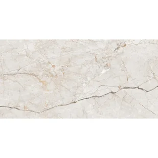 Płytka imitująca ciepły, biały kamień z żyłą w odcieniach brązu. Gres szkliwiony rektyfikowany - matowy z efektem carvingu. Format 60x120 cm.