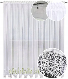 Firana gładka z koronką 230x400 firany do salonu z gipiurą długie firanka