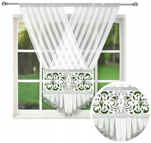 PANEL DEKORACYJNY Z CYRKONIAMI I AŻUREM 120 cm x 160 cm Piękny i oryginalny panel okienny wykonany z półprzezroczystego woalu szytego zakładkowo, ozdobionego...