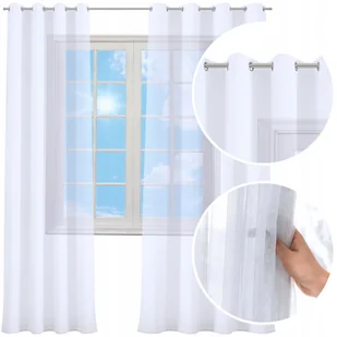 FIRANA GOTOWA WOAL BIAŁA 140X250 CM ZASŁONA PRZELOTKI FIRANY NA PRZELOTKACH