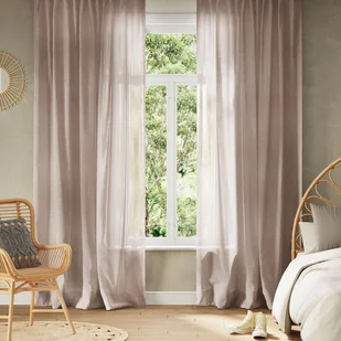 Firana w 40% z lnu i 60% z poliestru. Podwójne barwienie, doskonała gramatura, miękkość i układ. 60% poliestru zapewnia łatwą pielęgnację, minimalizując niedogodności związane z lnem. Pranie w zimnej wodzie, delikatny program, krótkie wirowanie, płynny detergent bez wybielaczy i suszenie na mokro na karniszu lub szynie, prasowanie nie będzie konieczne. Czasowa firana.