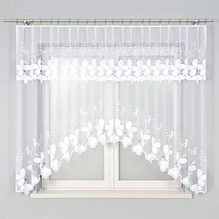 Gotowa do zawieszenia firanka żakardowa z motywem: rośliny/kwiaty, boki fabryczne, górne wykończenie: fabryczne bez taśmy, dolne wykończenie: laserowo wytapiany, wysokość 160 cm, szerokość (przed zmarszczeniem) 300 cm. Firanka ta będzie doskonałą dekoracją okna w każdym wnętrzu.