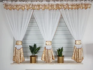 Gotowa dekoracja okienna "kokony" złota, firana woalowa , firanka na taśmie