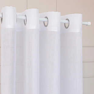 Gotowa firana na przelotkach, z białej błyszczącej przędzy o strukturze płótna, Nala, 500x250 cm