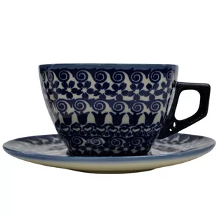 0,7 kg [poj]Capacity: 0,3 l Opis: Oryginalna filiżanka bolesławiecka ze spodkiem (talerzykiem). Wyjątkowo piękna ceramiczna, podszkliwnie dekorowana, filiżanka kwadratowa ze spodkiem ceramicznym o pojemności aż 300ml. Kształt filiżanki wyróżnia się spośród innych kubków i filiżanek z naszej oferty.