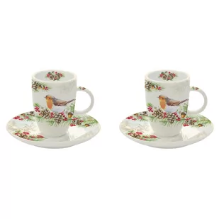 Easy life Filiżanki Do Espresso Porcelanowe Ze Spodkami Winter Robin Białe 50 Ml 2 Szt