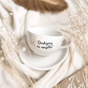 Czasami nie trzeba słów ani specjalnych symboli, by ukazać wyjątkowość produktu. Właśnie z takim przesłaniem stworzyliśmy naszą nakrapianą serię. Nakrapiana złotem filiżanka ze spodkiem jest nie tylko minimalistyczna, ale także bardzo elegancka, wpasowuje się w nadzwyczajnie dużą liczbę stylów aranżacji oraz kompozycji. Oczywiście, dajemy naszym klientom możliwość dodania czegoś od siebie, dlatego możesz podyktować nam krótki napis, który pojawi się przy wewnętrznej krawędzi filiżanki. To prosty i minimalistyczny sposób na uczynienie jej nadzwyczajnie naszym.