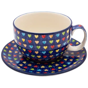 Filiżanka Do Herbaty Kawy 350 ml Ze Spodkiem Serca - Ceramika Artystyczna Bolesławiec