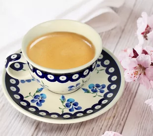 Dzieło sztuki jest efektem długiej rzemieślniczej tradycji i zaangażowania artystów. ✔️ ponadczasowy design sprawia, że doskonale pasuje do każdej kuchni, a ręczny proces produkcji gwarantuje jego unikatowy charakter. To idealny wybór dla osób ceniących sobie elegancki wygląd, trwałość i zdrowy styl życia. Pojemność 0,22 L Średnica spodka 16 cm Średnica filiżanki + uszko 11,8 cm Wysokość filiżanki 6,5 cm Filiżanka ze spodkiem z Ceramiki Bolesławiec to produkt nie tylko praktyczny, ale również artystyczny, dodający uroku i wyjątkowości codziennym chwilom kawowym i herbacianym. Jej unikalne wzornictwo, wysoka jakość i długa tradycja czynią z niej wartościowy i ceniony produkt.