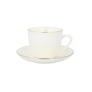Filiżanka z podstawką AURO to takie cacuszko, że podarowana komuś, nawet pojedynczo, będzie wspaniałym upominkiem. Cechy charakterystyczne Niewielka filiżanka AURO o pojemności 0,21l i wysokości 7cm zestawiona została z podstawką o średnicy 15cm. Wykonana została z delikatnej porcelany w kolorze śmietankowo-ecru, której jedyną ozdobą jest złoty pasek, który umieszczono na krawędzi obu elementów. Materiał Zestaw wykonany został wyłącznie z porcelany. Produktu nie można myć w zmywarce.