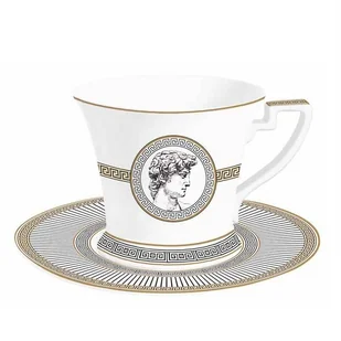 Filiżanka z talerzykiem z kolekcji PALLADIUM w kolorowym opakowaniu. Produkt wykonany ze średniej grubości porcelany. Nadaje się do mycia w zmywarce i używan...