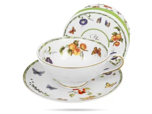 Filiżanka ze spodkiem 220 ml kwiaty Sweet Dream porcelana na prezent DUO Filiżanka w kwiaty, owoce i motyle - wykonana z wysokiej jakości porcelany. Lekka, w...
