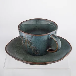 Filiżanka ze spodkiem ceramiczna 220 ml zielono-brązowa