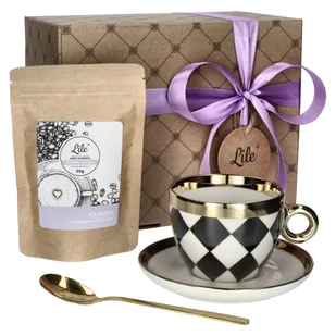 Filiżanka ze spodkiem, łyżeczką i kawą 195 ml Lile Domino LI-075G