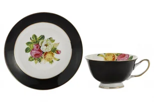 Komplet filiżanka czarna spodek do herbaty róże