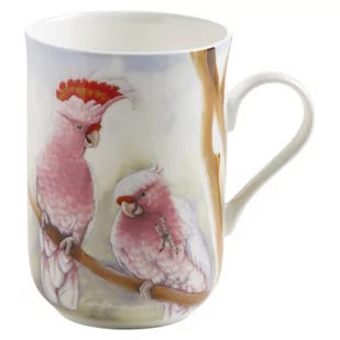Kubek porcelanowy marki Maxwell&Williams zachwyca motywem uroczej papugi kakadu, który przypadnie do gustu wszystkim miłośnikom przyrody. Pojemny kubek doskonale nadaje się do serwowania rozgrzewającej herbaty, dużej kawy z mlekiem czy gorącej czekolady. Lekko zaokrąglony kształt kubka nadaje mu elegancki. Dzięki wykonaniu z porcelany kubek może być używany w piekarnikach, kuchenkach mikrofalowych i zamrażalnikach. Kubek pochodzi z kolekcji Birds of the World, cechującej się wykonaniem z najlepszej jakości porcelany kostnej typu bone china.