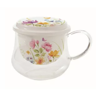 Niezwykła filiżanka z kolekcji Romantic. Kolekcja Romantic wyróżnia się subtelną kwiatową dekoracją. Produkt różni się od pozostałych naczyń z tej kolekcji. Wyjątkowa filiżanka wykonana jest z przezroczystego szkła borokrzemowego. Umieszczony w środku porcelanowy zaparzacz z pokrywką zachowany jest w motywie kolekcji.