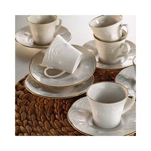 Ergonomiczny uchwyt zapewnia wygodny chwyt, dzięki czemu możesz delektować się każdym łykiem idealnie zaparzonej kawy. Jakość wykonaniaKażdy element naszego zestawu filiżanek do kawy jest starannie wykonany z dbałością o szczegóły, aby zapewnić trwałość i długowieczność. Wykonane z wysokiej jakości porcelany filiżanki są odporne na odpryski i pęknięcia, dzięki czemu idealnie nadają się do codziennego użytku. Tworzenie niezapomnianych chwilNiezależnie od tego, czy spędzasz chwilę w samotności, czy organizujesz spotkanie z przyjaciółmi i rodziną, nasz zestaw filiżanek do kawy stworzy niezapomniane wspomnienia. Zestaw składa się z sześciu filiżanek do kawy i sześciu spodków, zapewniając wystarczającą ilość miejsca dla wszystkich.