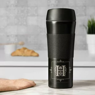 Czarny kubek termiczny z powłoką antypoślizgową i grawerem dla gentlemana na imieniny