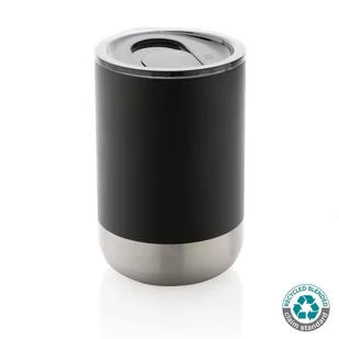 Kubek termiczny 360 ml, podwójne ścianki z próżnią pomiędzy, utrzymuje temperaturę napojów ciepłych do 3 godzin oraz zimnych do 6 godzin, wieczko zapobiegające rozlewaniu, wykonany ze stali nierdzewnej z recyklingu z certyfikatem RCS (Recycled Claim Standard) który gwarantuje, że wykorzystane materiały pochodzą z recyklingu, całkowita zawartość materiału z recyklingu obliczona w oparciu o wagę całkowitą przedmiotu: 83%, w pudełku z papieru kraftowego z certyfikatem FSC® (Forest Stewardship Council), nie zawiera BPA