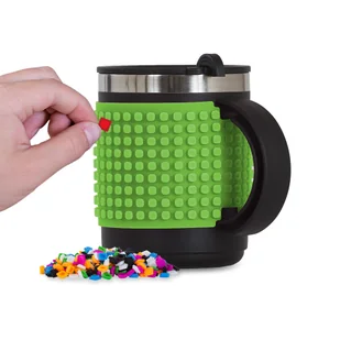 Wysokiej jakości kubek termiczny o pojemności 400 ml z rdzeniem ze stali nierdzewnej i praktycznym wieczkiem sprawi, że napój będzie ciepły lub dobrze schłodzony, przez długi czas. Elegancki uchwyt kubka zapewnia jednocześnie "bezpieczne" picie dzieciom. Dobrze uszczelnione wieczko i zamykane otwieranie doceni każdy, kto potrafi cieszyć się napojami. Powierzchnia boczna kubka pokryta jest unikalnym silikonowym panelem kreatywnym PIXIE CREW TM w kolorze zielonym. Do każdego kubka dołączono paczkę około 100 darmowych małych pikseli.