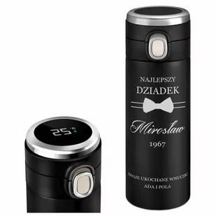 Czarny kubek termiczny z wyświetlaczem dla dziadka Zbliżają się urodziny Twojego dziadka, ale Ty wciąż nie masz upominku dla niego ? A może zbliża się Dzień Dziadka ? Wybierasz podziękowania ślubne dla najważniejszych gości weselnych? Zupełnie nie wiesz, co kupić dla kawosza na zbliżającą się imprezę? Spersonalizowany czarny kubek termiczny z wyświetlaczem LED i grawerunkiem to praktyczny upominek dla bliskiej osoby. Idealnie sprawdzi się w roli pamiątki dla każdego zmarzlucha z okazji świąt . To też doskonałe akcesorium w rękach doświadczonego amatora ekstremalnych sportów zimowych, narciarstwa i snowboardu . To czarne naczynie z grawerowaną dedykacją posłuży do przechowywania i transportu aż 400 ml kawy, herbaty czy schłodzonego napoju. Termos z kawą jest atrybutem studenta wbiegającego na zajęcia z uwzględnieniem kwadransa akademickiego i z głową pełną marzeń i zadań do opracowania.