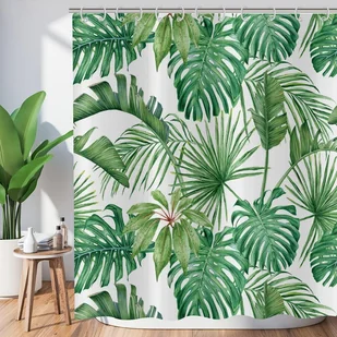 【Materiał premium】Wykonana z ekologicznego poliestru, ta zasłona prysznicowa jest nie tylko niezwykle miękka w dotyku, ale także odporna na zagniecenia, blaknięcie i trwała. Solidna, wodoodporna konstrukcja zapewnia szybkie spływanie wody, zapewniając bezpieczne i komfortowe warunki kąpieli. Ciesz się! 【Stylowy design】Nasza zasłona prysznicowa z tropikalnym liściem posiada nadruk HD w świeżych, ekologicznych kolorach. Ta zielona zasłona wniesie do Twojej łazienki powiew natury. Zapewnia prywatność i dekoracyjny wygląd. Nigdy nie blaknie. 【Szerokie zastosowanie】Ta zasłona prysznicowa ma wymiary 180 x 180 cm / 71 x 71 cali. Pasuje do większości standardowych wanien i kabin prysznicowych i może być używana z prostymi lub zakrzywionymi drążkami prysznicowymi. Może być szeroko stosowana jako zasłona prysznicowa do łazienki, zasłona w ogrodzie, zasłona drzwiowa do sypialni oraz jako dekoracja w domach, akademikach, apartamentach, hotelach, klubach itp. 【Instrukcja pielęgnacji】Przed powieszeniem namocz zasłony łazienkowe w ciepłej wodzie, aby usunąć zagniecenia. Regularnie przecieraj miękką ściereczką lub gąbką. Można prać ręcznie lub w pralce w zimnej wodzie. Wystarczy umieścić je w pralce na delikatnym cyklu z łagodnym detergentem, a następnie suszyć w suszarce bębnowej w niskiej temperaturze lub suszyć w dobrze wentylowanym pomieszczeniu. Nie wybielać. 【Łatwy montaż】Zaprojektowany z 12 wzmocnionymi metalowymi otworami na przelotki i wyposażony w 12 plastikowych haczyków dla łatwego montażu i demontażu. W przypadku pytań dotyczących naszych zasłon prysznicowych prosimy o natychmiastowy kontakt. Odpowiemy najszybciej, jak to możliwe i upewnimy się, że Twój problem zostanie odpowiednio rozwiązany. ZESTAW ZAWIERA: 1 zasłonę prysznicową + 12 plastikowych haczyków.