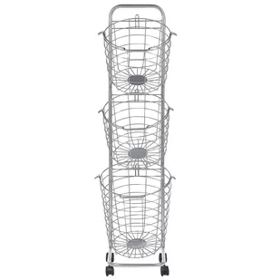 Wózek do przechowywania z koszami. Praktyczny, metalowy stojak na kółkach z drucianymi koszami do przechowywania pomoże utrzymać porządek w każdym domu lub mieszkaniu. Wykonany z malowanego proszkowo metalu, jest lekki i prosty w pielęgnacji. Doskonale sprawdzi się w łazience na ręczniki i pranie, a w kuchni na owoce i warzywa. Będzie też niezastąpiony w pokoju na gazety, koce, ubrania czy zabawki.