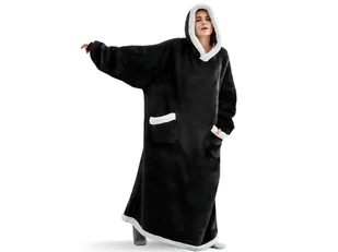 Ciepła bluza koc oversize gruba miękka z kapturem szlafrok długa xxl czarna