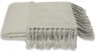 Duży koc akrylowy z frędzlami szary narzuta pled ciepły 130x180 miękki / RIVAHOME