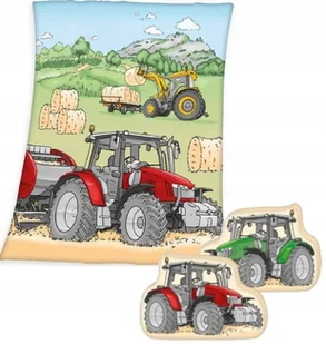 DUŻY KOC POLAROWY CIĄGNIK TRAKTOR CIEPŁY LEKKI PLED DLA DZIECKA i PODUSZKA