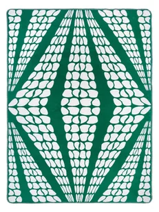 Koc bawełniano-akrylowy 150x200 biały zielony w geometryczne lilie