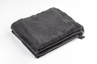 Koc bawełniany akrylowy 150x200 0293/31 antracytowy narzuta pled wykończony frędzlami