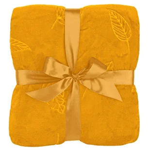 Koc Calen 130x170 musztardowy wytłaczany w liście mikroflanela Lato 23