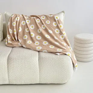 Mięciutki Koc w Stokrotki beżowy. Miękki pluszowy koc w białe kwiatki Stokrotki na beżowym tle, to idealny minimalistyczny wiosenny koc, który sprawdzi się świetnie w chłodne wieczory. Jest wykonany z delika ...