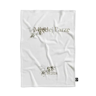 Koc pluszowy ślubny wzór LS31 | złota młoda para 135 x 100 cm Tkanina: Niezwykle miękka dzianina z trwałym jednostronnym nadrukiem sublimacyjnym - 100% polie...