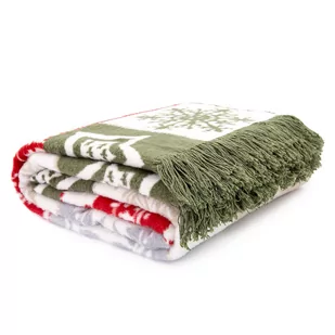 Koc bawełniany akrylowy 150x200 Świąteczny zielony biały czerwny choinki 24160A 24