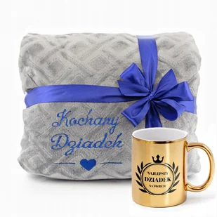 Koc z Mikrofibry 160 x 200 z Haftem Złoty Kubek Prezent na Dzień Dziadka