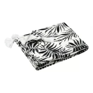 Bawełniany koc ZIANA zachwyca swoim nowoczesnym wzorem inspirowanym motywami roślinnymi. Czarne liście na jasnym tle nadają mu wyjątkowy kontrast, co sprawia, że jest doskonałym elementem dekoracyjnym, idealnym do ożywienia wnętrza. Koc jest wykonany z wysokiej jakości bawełny, co zapewnia miękkość i komfort użytkowania. Dodatkowo, ozdobne frędzle na rogach dodają mu subtelnego charakteru boho. Świetnie sprawdzi się zarówno jako stylowy narzut na sofę, jak i przytulne okrycie w chłodniejsze dni.