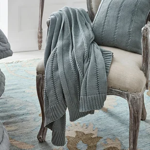 Ten wspaniały pled zachwyca piękną dzianinową strukturą. Został wykonany z miękkiej, czystej bawełny. Stylowy dodatek w uroczym odcieniu świetnie komponuje się ze stylem rustykalnym i jest absolutnie ponadczasowy. Ten atrakcyjny koc jest idealny do otulenia się na kanapie, ale może posłużyć również jako narzuta na łóżko. To także doskonały towarzysz na chłodniejsze wieczory przy ognisku lub na relaks na balkonie z dobrą książką – po prostu niesamowicie uroczy, przytulny i wszechstronny, dzięki czemu będziesz się nim cieszyć przez cały rok.