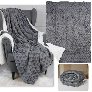 Miękki i przytulny koc w kolorze szarym, idealny na chłodne wieczory. Jedna strona koca jest wykonana z pluszowego materiału z delikatnym geometrycznym wzore...
