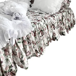 Prześcieradło Na Łóżko Bawełniane Z Ozdobną Falbanką Retro Kwiaty 150X200 Cm