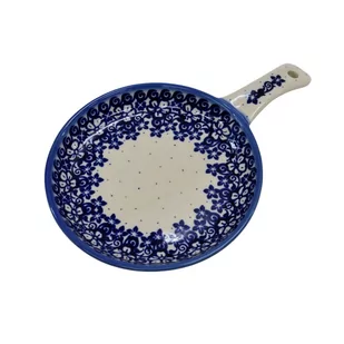 Ceramiczna patelnia duża, wymalowana w tradycyjne bolesławieckie wzory. Naczynie służące do podawania jajecznicy, jajek sadzonych, sałatek, surówek czy świeżo upieczonych kiełbasek lub tostów z serem i szynką. Naczynie może posłużyć jako element dekoracyjny każdego pomieszczenia w Twoim domu (kuchni, jadalni czy nawet pokoju). Posiada otwór, który umożliwia jej powieszenia na haczyku bądź gwoździu. Wszystkie produkty z bolesławieckiej fabryki ceramiki są przeznaczone do kontaktu z żywnością, wolne od metali ciężkich.