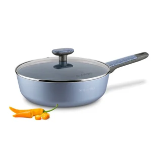 - Wysoki rant ułatwia mieszanie i zapobiega rozchlapywaniu składników podczas smażenia i duszenia.