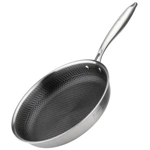 Patelnia tradycyjna E-7549 o średnicy 28 cm wykonana ze stali, z powłoką plaster miodu, zapewnia równomierne rozprowadzanie ciepła i trwałość. Idealna do codziennego gotowania, łatwa do czyszczenia i odporna na zabrudzenia. Wybierz jakość i funkcjonalność w Twojej kuchni!