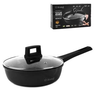 Głęboka patelnia indukcyjna Starke Pro Taylor Marble 24 x 7,5 cm wykonana jest z aluminium i ma dwie wylewki. Do jej stworzenia wykorzystano technikę jednorodnego odlewu die cast. Dzięki temu jest świetnie wyważona i bardzo wytrzymała pod względem mechanicznym oraz termicznym. Wnętrze patelni marmurkowej wykończono niemiecką powłoką non-stick GREBLON C3 typu stone. Jej wysoka jakość, twardość oraz 3-warstwowa struktura zostały opracowane przez firmę WEILBURGER.